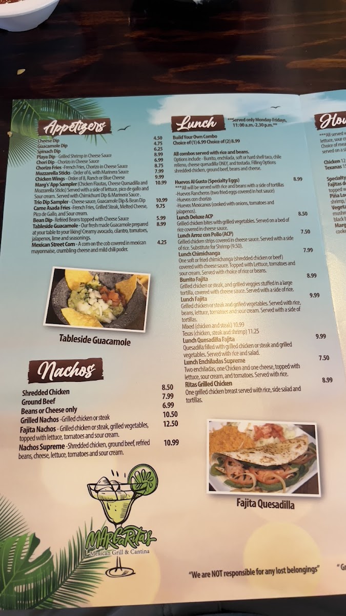Margaritas Mexican Grill & Cantina - Surf City Menu